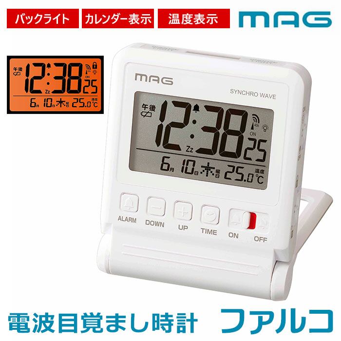 時計 電波 置時計 デジタル 通販 置き時計 電波時計 デジタル時計 シンプル バックライト 温度表示 温度計 アラーム 電子音 スヌーズ タッチセンサー式ライト 光センサー ライト自動点灯 カレンダー表示 電波受信ON/OFF機能付 MAG マグ T-771 電波目覚まし時計 ファルコ