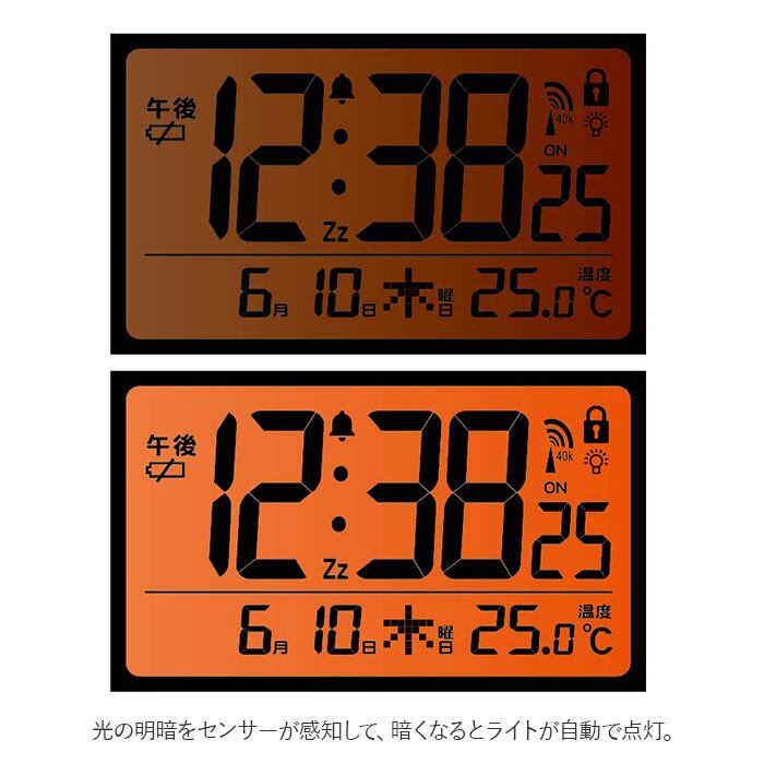 ※電波時計、電波受信状況表示、電子音アラーム、スヌーズ、ライト、自動点灯機能、カレンダー表示、温度表示、誤作動防止ロック機能、電池交換お知らせ表示