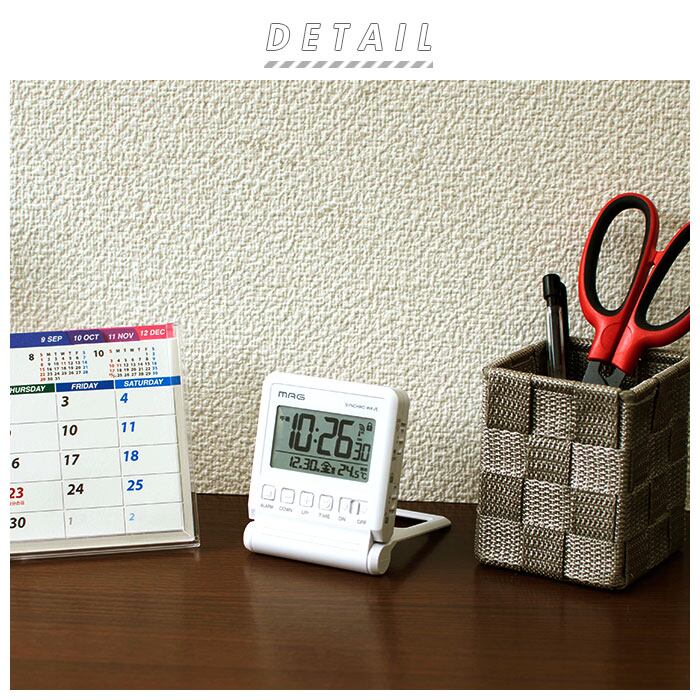 ・テレワークや自宅勤務時にパソコン横に置くと便利な多機能時計。コンパクトサイズなので、旅行・仕事出張のお供にもぴったり。