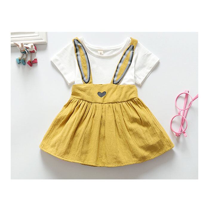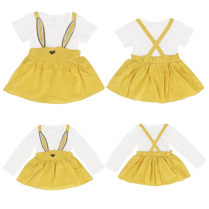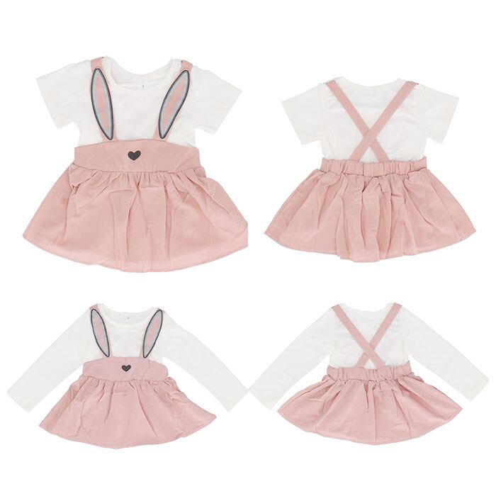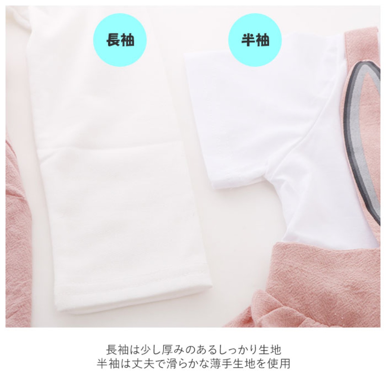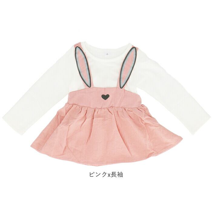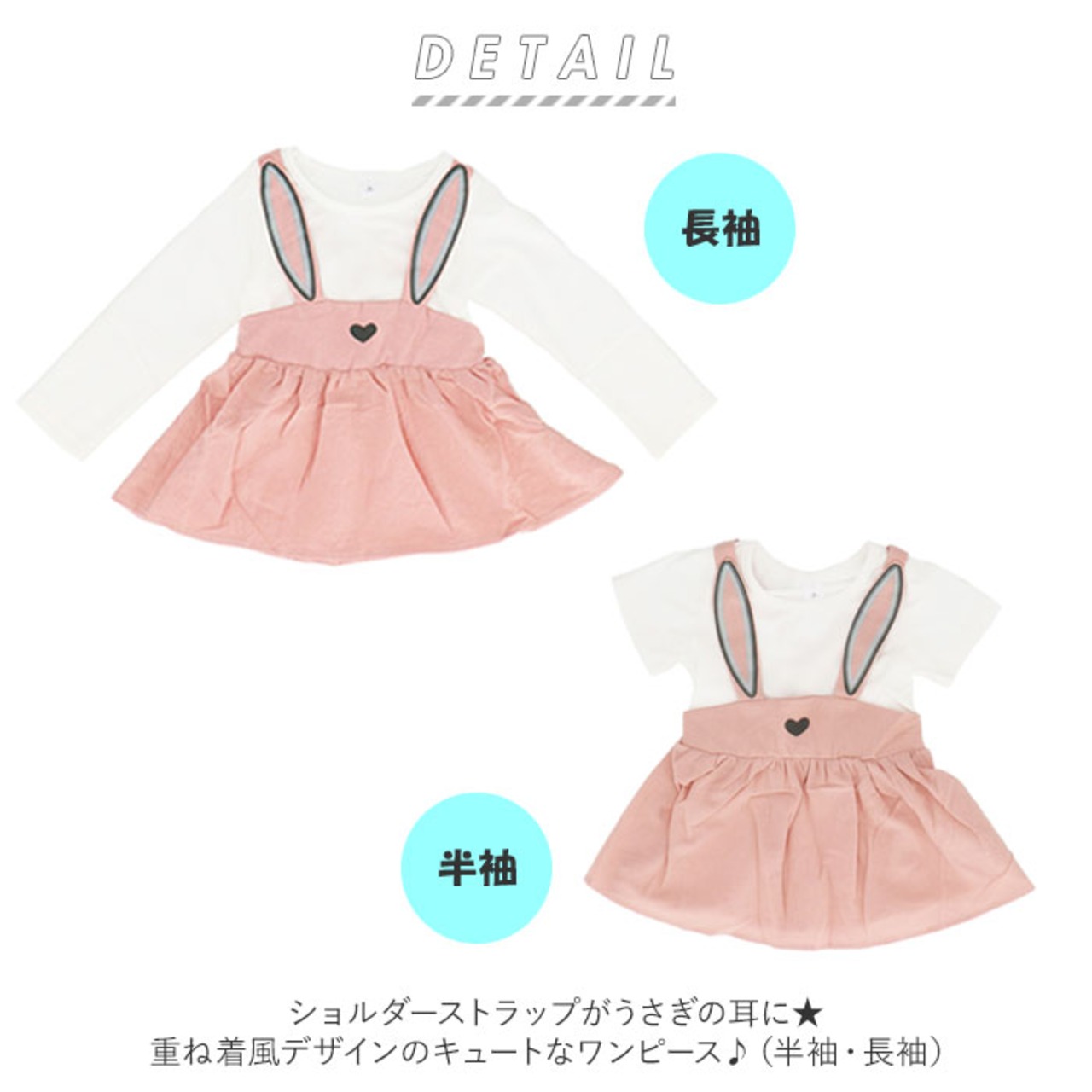 ・ショルダーストラップがうさぎの耳に★重ね着風デザインのキュートなワンピース♪(半袖・長袖)