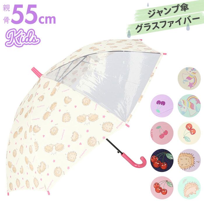 子供 傘 55cm 女の子 通販 キッズ 長傘 ワンタッチ ジャンプ傘 女児用 雨傘 透明窓 8本骨 かわいい おしゃれ グラスファイバー 丈夫 かさ カサ モフモフ 小学生 低学年