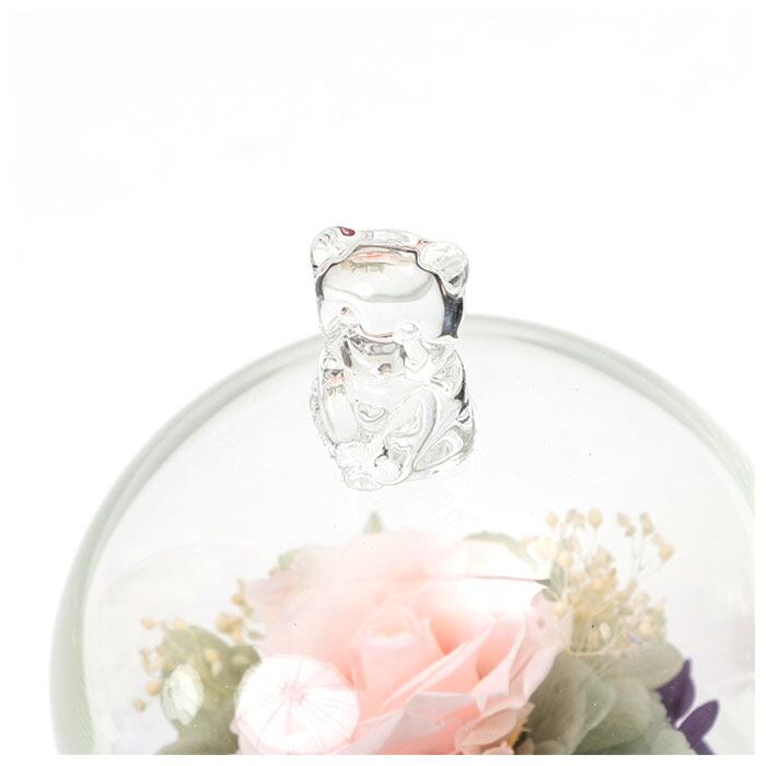 ・ドームの頂きには、幸福を呼ぶモチーフがキラリ☆プリザーブドフラワーをガラスドームに閉じ込めた「モチーフドーム・アレンジメント」