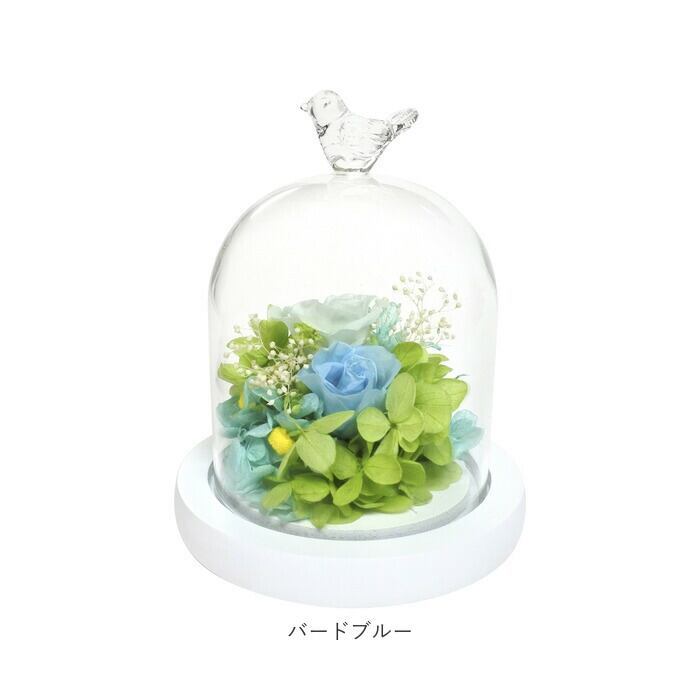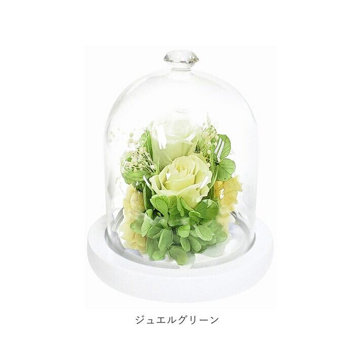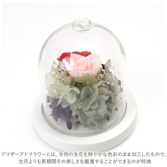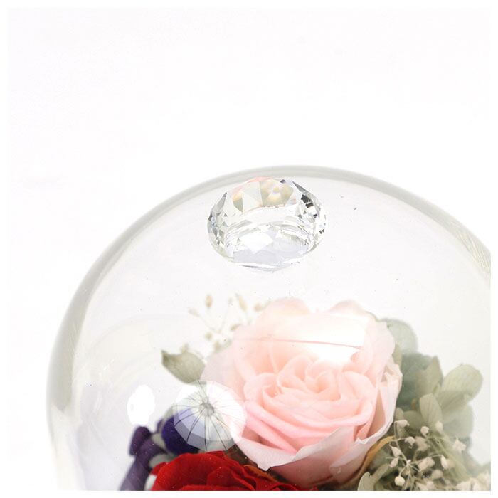 ・透明なガラスドームに覆われているので、お花がホコリで汚れてしまう心配がなく、水やりや水換えの必要がないのも嬉しいポイント。
