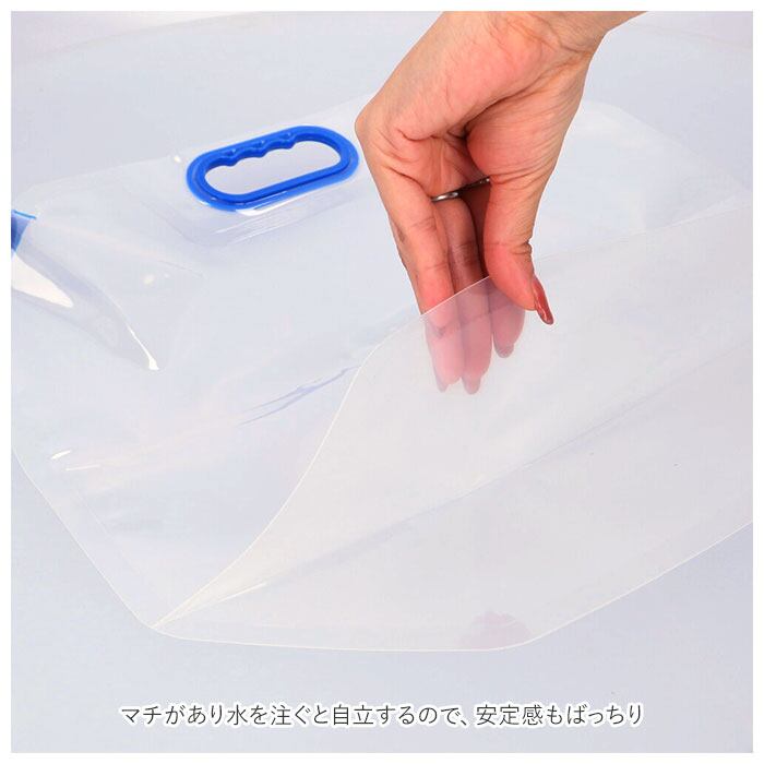 ・ポリタンクと違い、平常時は折りたたんでコンパクトに保管が可能◎災害バッグなどにすっぽり収まる薄型設計!