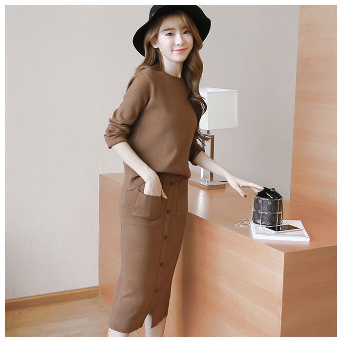 セットアップ レディース ニット 通販 秋冬 カジュアル スカート きれいめ セーター 長袖 クルーネック ロングスカート タイト ミモレ丈 タイトスカート 通勤 大人 かわいい コットン スカートスーツ