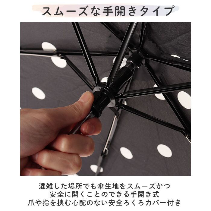 ・混雑した場所でも傘生地をスムーズかつ、安全に開くことのできる手開き式。