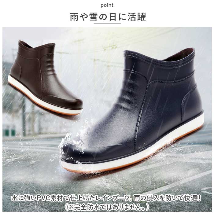 ・水に強いPVC素材で仕上げたレインブーツ。雨の侵入を防いで快適!(※完全防水ではありません。)