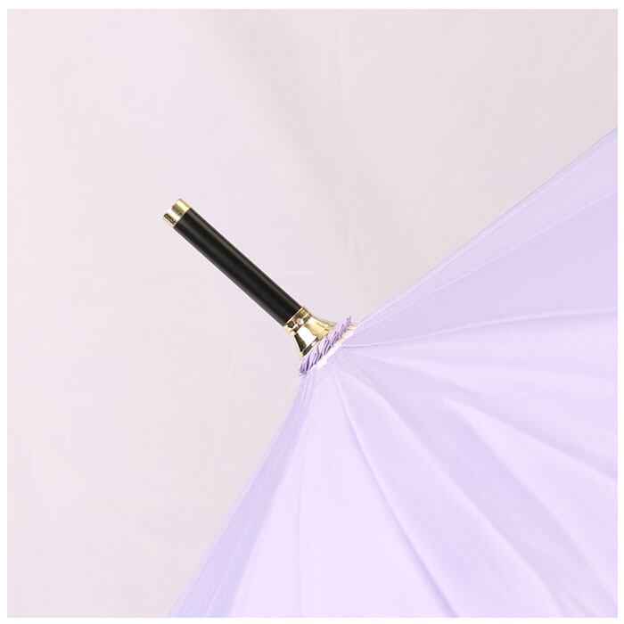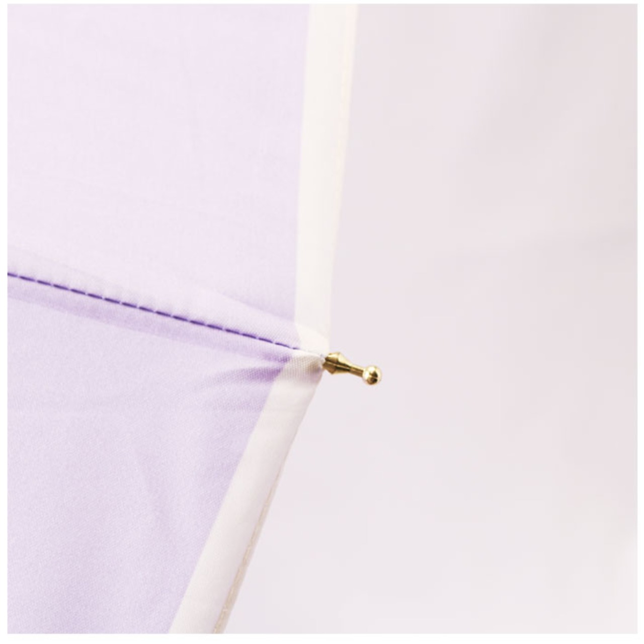 ・ニュアンスカラーの傘生地の裾を、優しいミルク色で縁取った上品なバイカラーデザイン。つゆ先やカシメボタンのゴールド色が控えめに輝くアクセント。