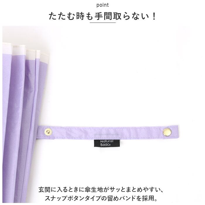 ・玄関に入るときに傘生地がサッとまとめやすい、スナップボタンタイプの留めバンドを採用。
