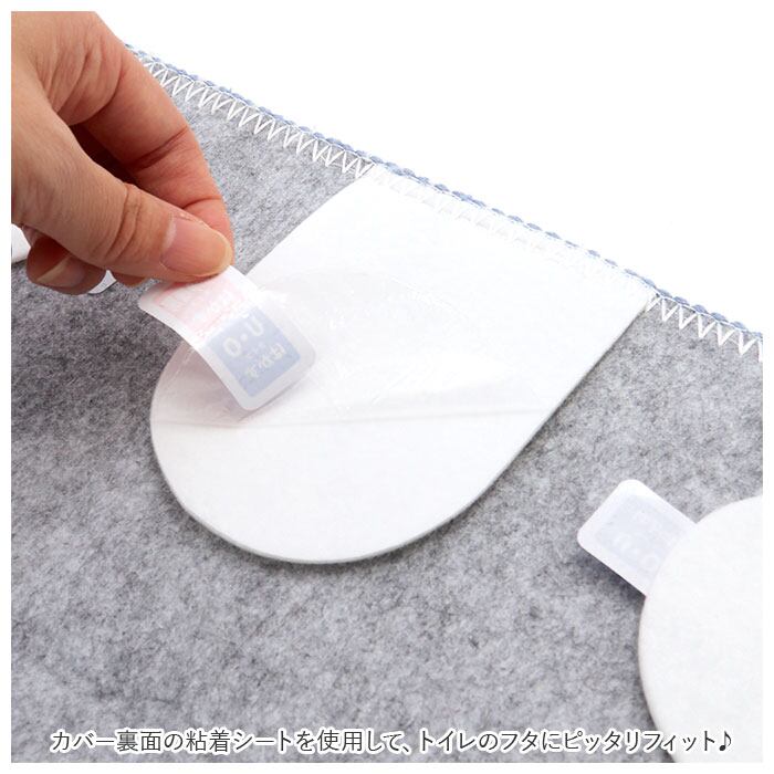 ・カバー裏面の粘着シートを使用して、トイレのフタにピッタリフィット♪