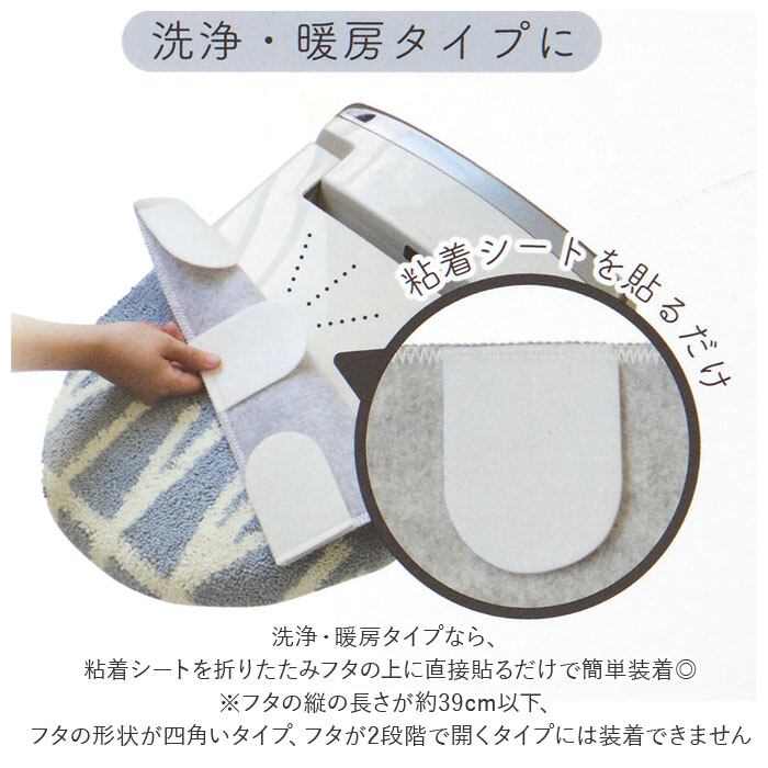 ・洗浄・暖房タイプなら、粘着シートを折りたたみフタの上に直接貼るだけで簡単装着◎