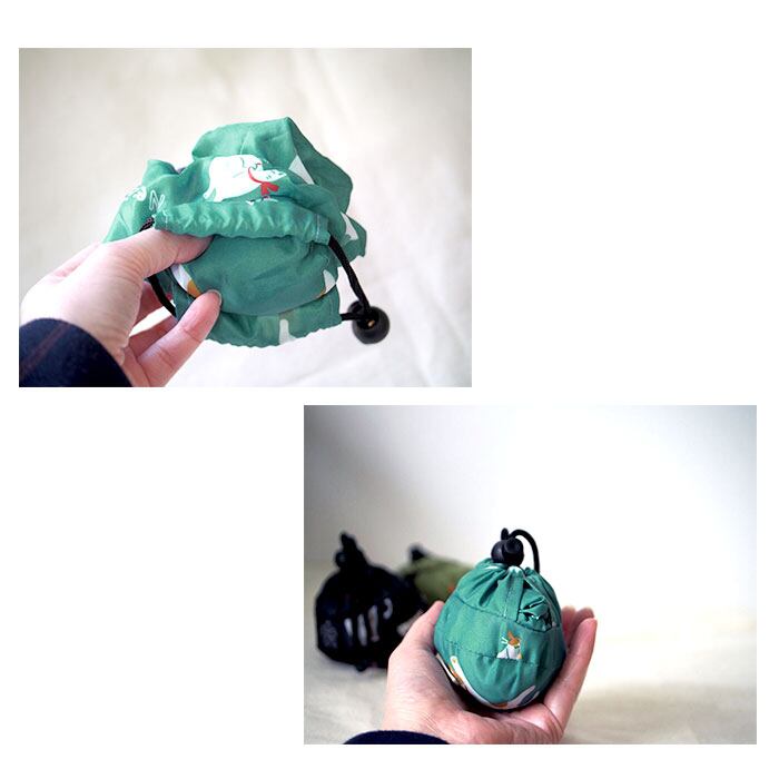 ・バッグ本体に付いている収納部分にギュッと押し込むだけ!あとは巾着の口を絞ればOK♪