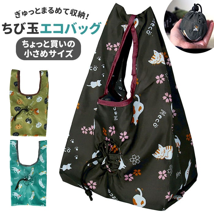 エコバッグ 折りたたみ コンパクト 通販 レジ袋型 軽量 軽い かわいい おしゃれ 小さめ 簡単 収納 ぎゅっと押し込む マイバッグ サブバッグ お買い物バッグ ショッピングバッグ ネコ 猫 ねこ まんまる ちび玉エコバッグ
