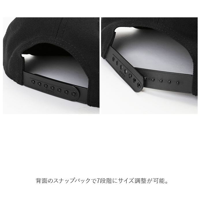 ・背面のスナップバックで7段階にサイズ調整が可能。