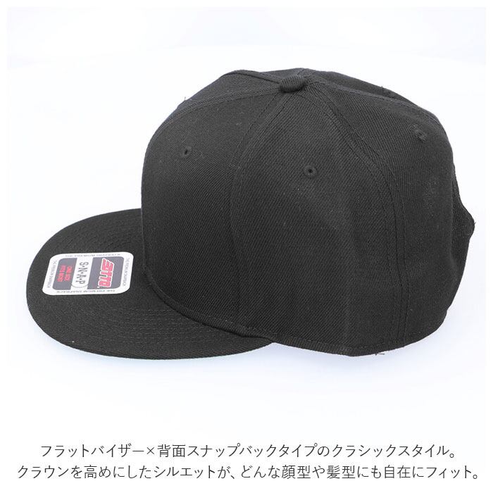 ・フラットバイザー×背面スナップバックタイプのクラシックスタイル。クラウンを高めにしたシルエットが、どんな顔型や髪型にも自在にフィット。