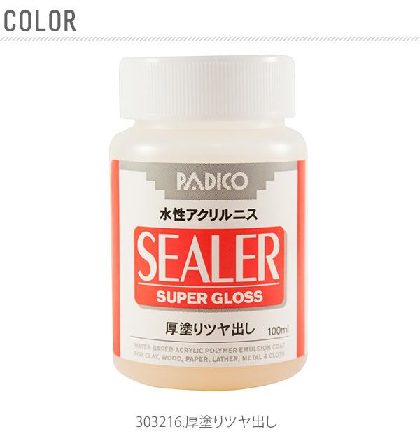ニス PADICO パジコ 通販 シーラー SEALER 水性ニス アクリルニス 水性アクリルニス 下塗り 仕上げ液 ツヤ出し ツヤ消し 耐水効果 合成樹脂塗料 100ml 絵具OK 粘土 紙 樹脂 金属 日本製