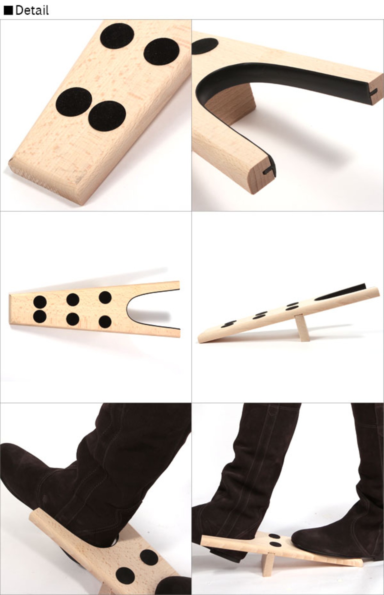 ブーツを脱ぐのに手間取らないブーツジャック!少ない力で楽にブーツが脱げます。立ったままかかとを引っ掛けるので、スマートかつ安全にお使い頂けます。ブーツを引っ掛ける箇所はゴム製なので、ブーツに傷が付くことを防ぎます。ロングブーツ、ショートブーツ、レインブーツなどを脱ぐ時の補助として使用します。ファスナーや靴ひもが無い靴を脱ぐのに便利なアイテムです。