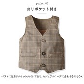 ・ベストには飾りポケットが付いており、カジュアルコーデに合わせるのもOK。