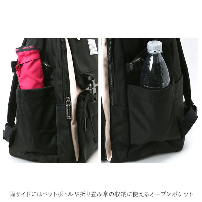 ・両サイドにはペットボトルや折り畳み傘の収納に使えるオープンポケット。