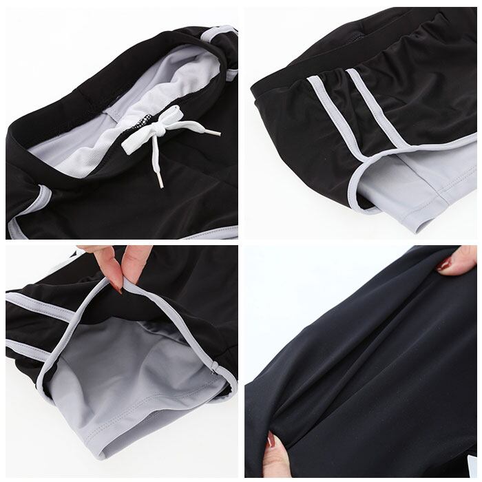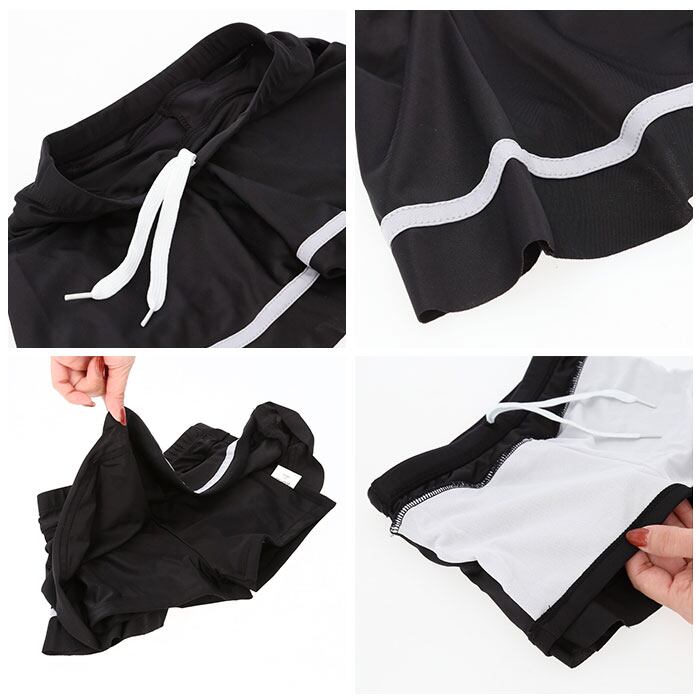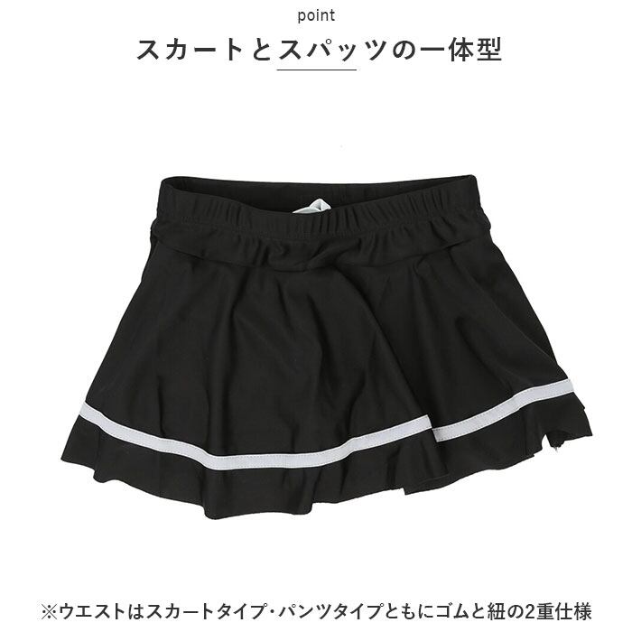 ・パンツはスパッツとショートパンツの一体型とスカートとスパッツの一体型の2種類。ウエストはゴムと紐の2重仕様。
