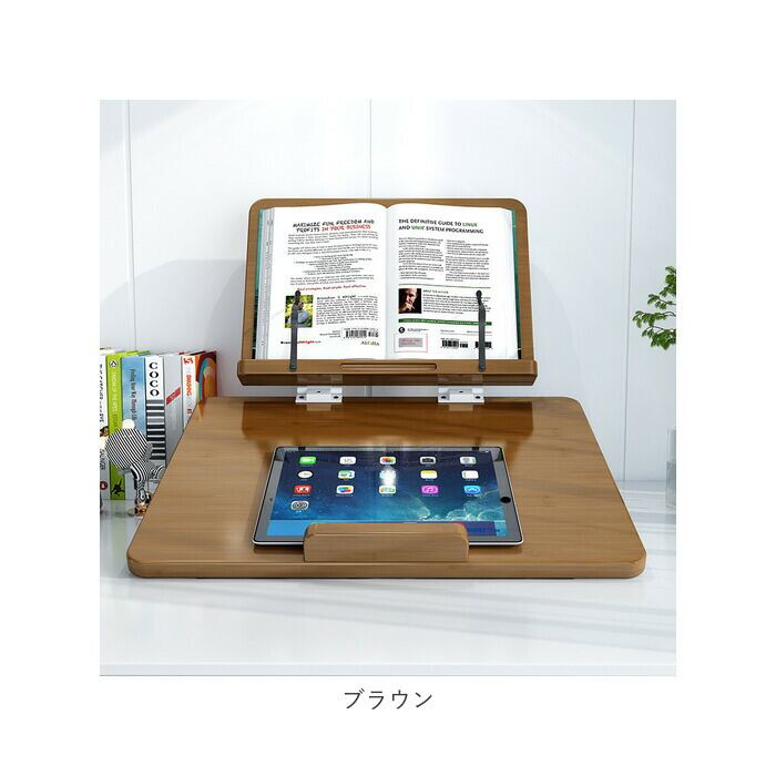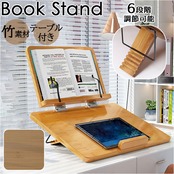 ・自然素材の竹で作られた、ナチュラルなテーブル付きブックスタンド。