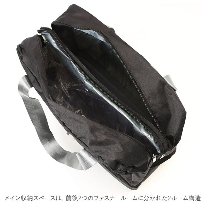 ・メイン収納スペースは、前後2つのファスナールームに分かれた2ルーム構造。