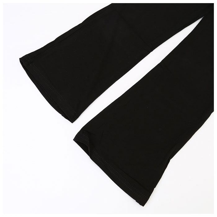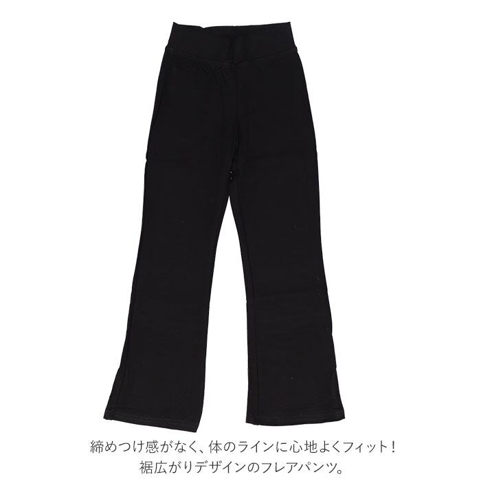 ・締めつけ感がなく、体のラインに心地よくフィット!裾広がりデザインのフレアパンツ。