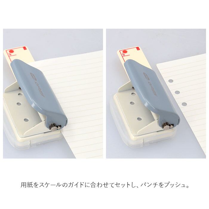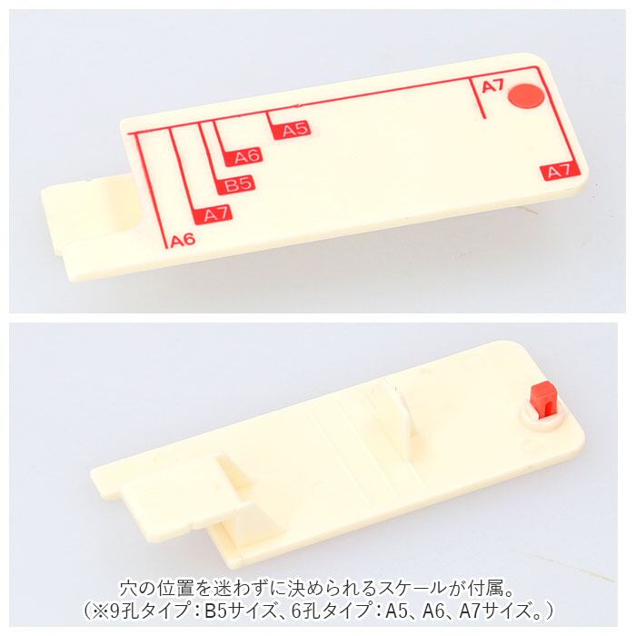 ・穴の位置を迷わずに決められるスケールが付属。(※9孔タイプ:B5サイズ、6孔タイプ:A5、A6、A7サイズ。)