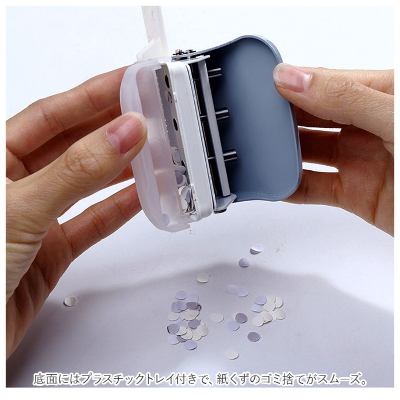 ・底面にはプラスチックトレイ付きで、紙くずのゴミ捨てがスムーズ。
