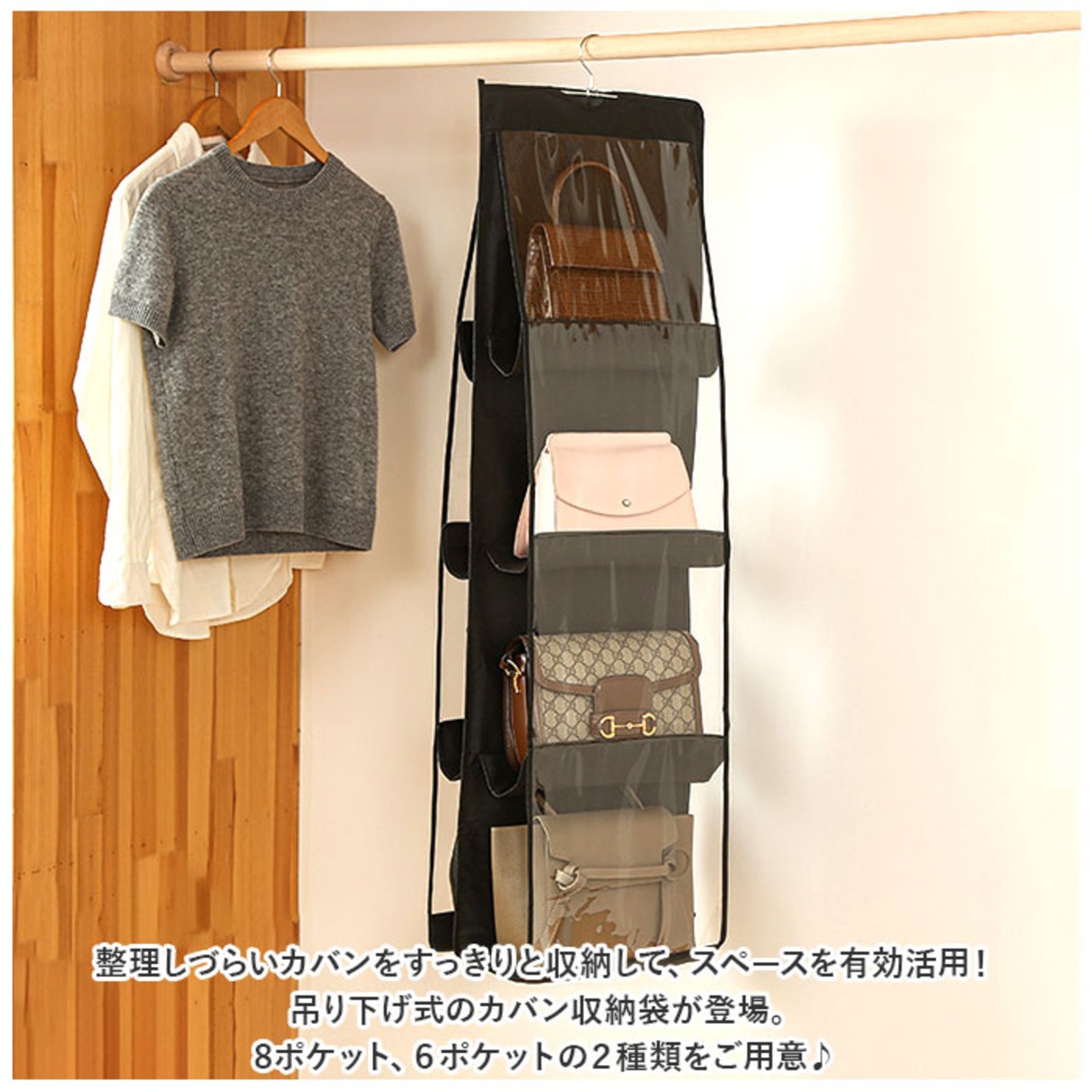 ・整理しづらいカバンをすっきりと収納して、スペースを有効活用!吊り下げ式のカバン収納袋が登場。
