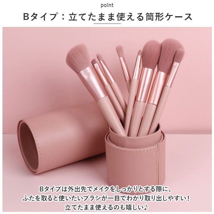 ・Bタイプは外出先でメイクをしっかりとする際に、ふたを取ると使いたいブラシが一目でわかり取り出しやすい!立てたまま使えるのも嬉しい♪