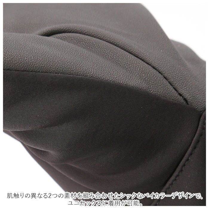 ・肌触りの異なる2つの素材を組み合わせたシックなバイカラーデザインで、ユニセックスに着用が可能。