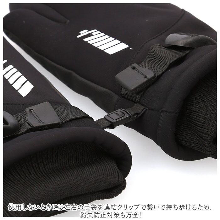 ・使用しないときには左右の手袋を連結クリップで繋いで持ち歩けるため、紛失防止対策も万全!