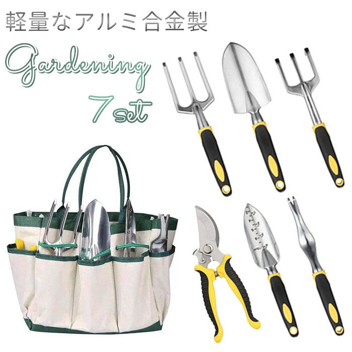 ガーデニングツール 通販 ガーデニングセット 7点セット 園芸作業ツール 植木剪定 園芸用品 プランダー移植 ガーデニング雑貨 DIY 工具 道具 スコップ シャベル 剪定ばさみ 除草はさみ ハサミ アルミ合金製 アウトドア キャンプ用品