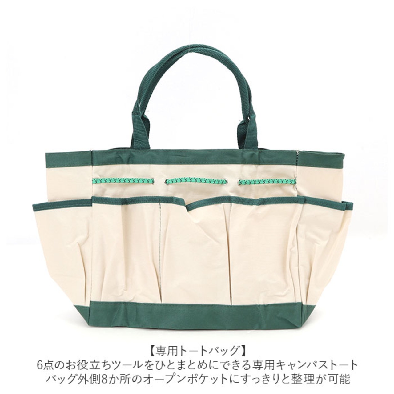 ・専用トートバッグ・・・6点のお役立ちツールをひとまとめにできる専用キャンバストート。バッグ外側8か所のオープンポケットにすっきりと整理が可能。