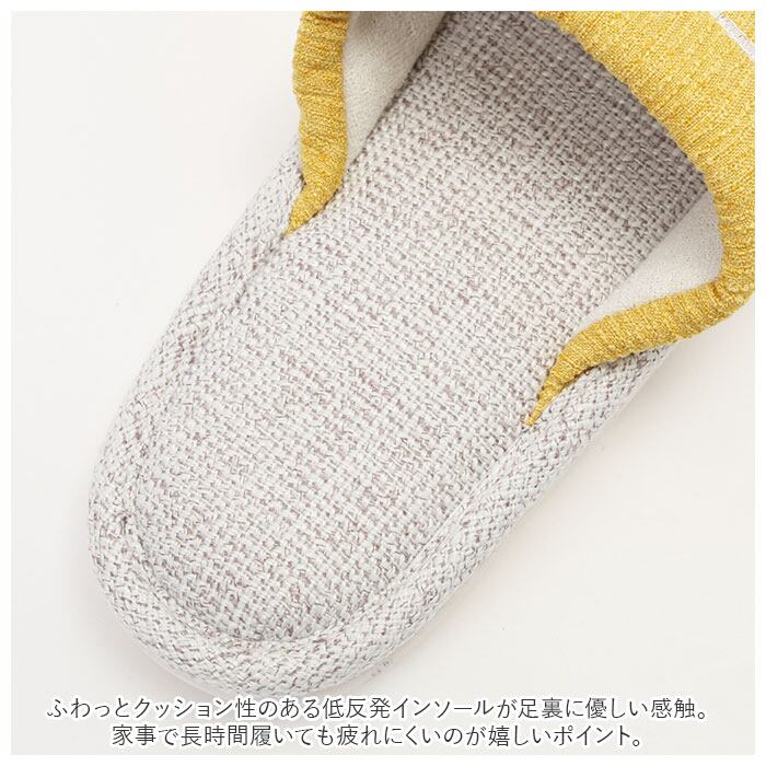 ・表生地とインソールは、リネン混の糸をざっくりと編み込んだ生地を使用し、サラッと気持ちのよい肌触り。