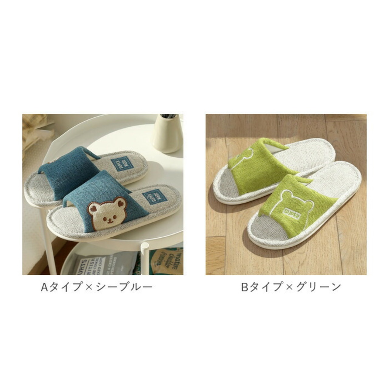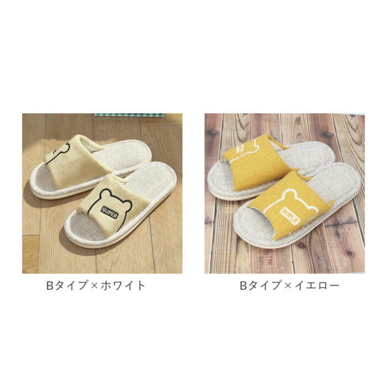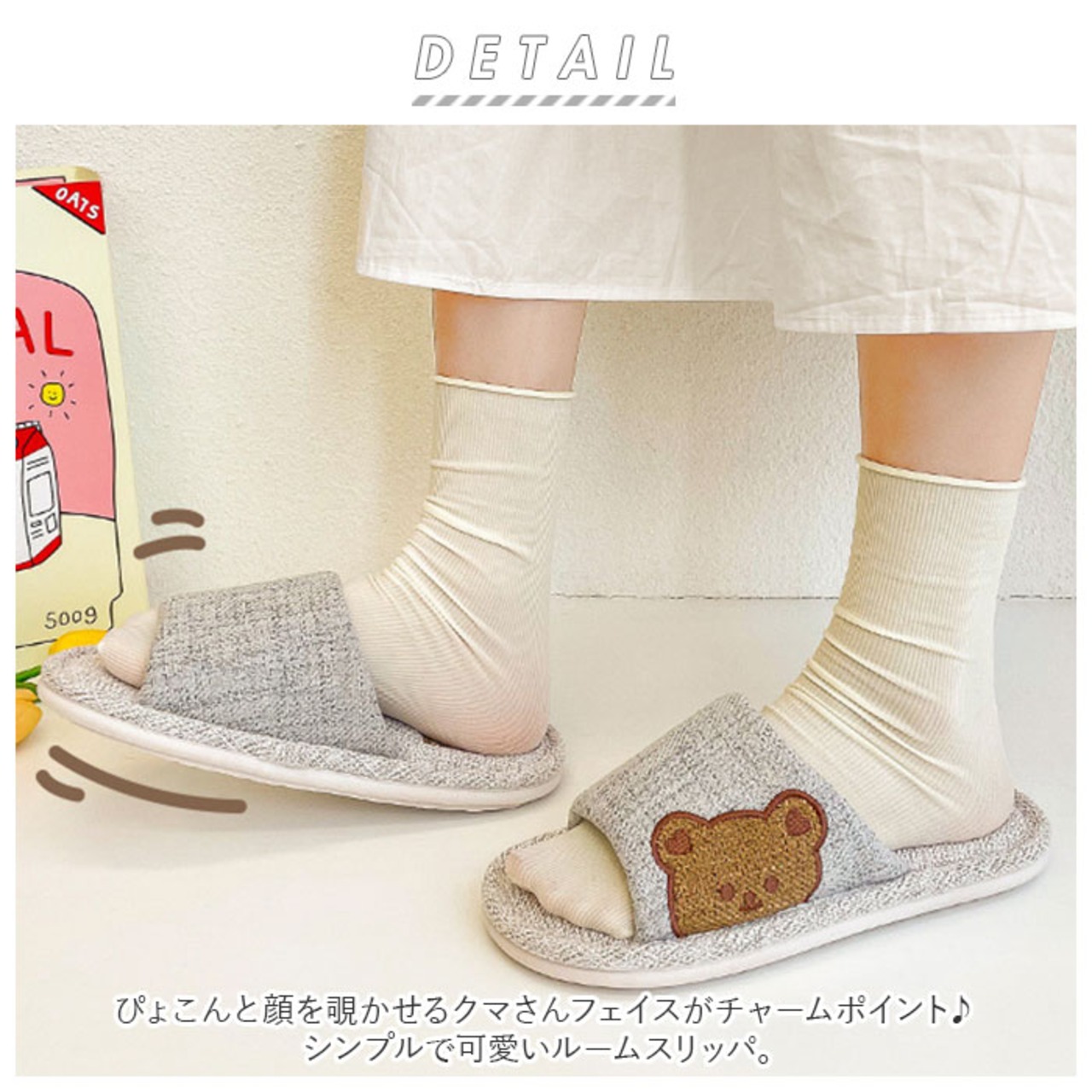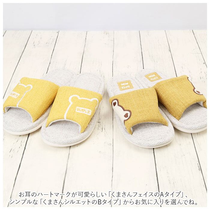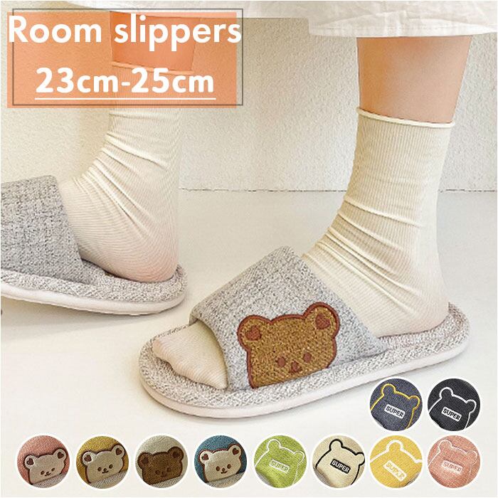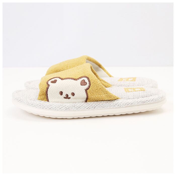 ・ぴょこんと顔を覗かせるクマさんフェイスがチャームポイント♪シンプルで可愛いルームスリッパ。