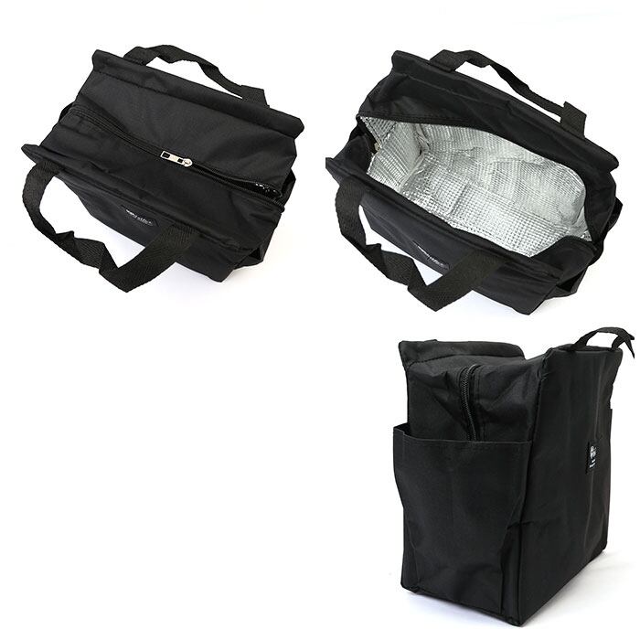 ・バッグの生地内側は、保温・保冷性に優れたアルム蒸着シート仕上げ。保冷剤や凍らせたペットボトルを一緒に入れておけば、お弁当の時間まで美味しさ長持ち。