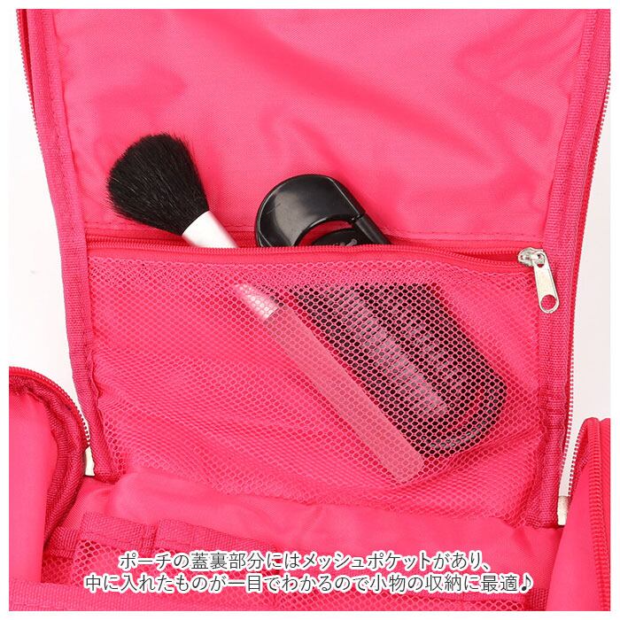 ・ポーチの蓋裏部分にはメッシュポケットがあり、中に入れたものが一目でわかるので小物の収納に最適♪