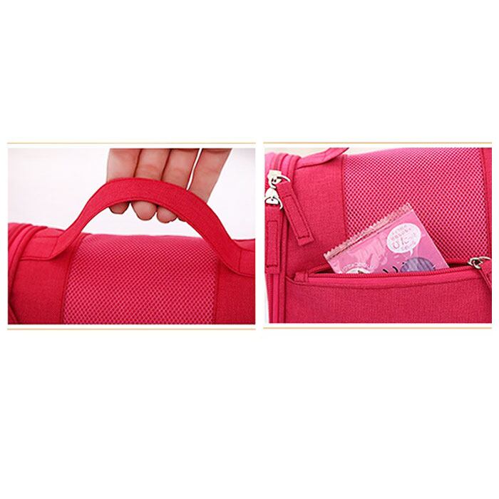 ・ポーチ上部には持ち手付き。お家の中でも外出中も、メイク用品を手軽に持ち運べる♪
