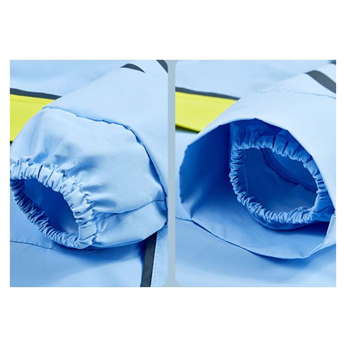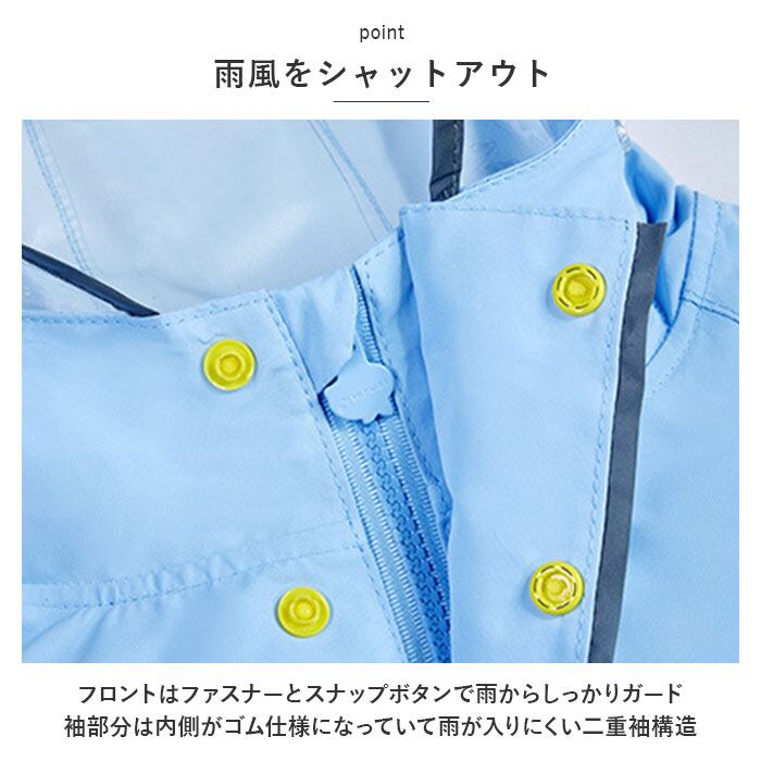 ・フロントはファスナーとスナップボタンで雨からしっかりガード。袖部分は内側がゴム仕様になっていて雨が入りにくい二重袖構造。