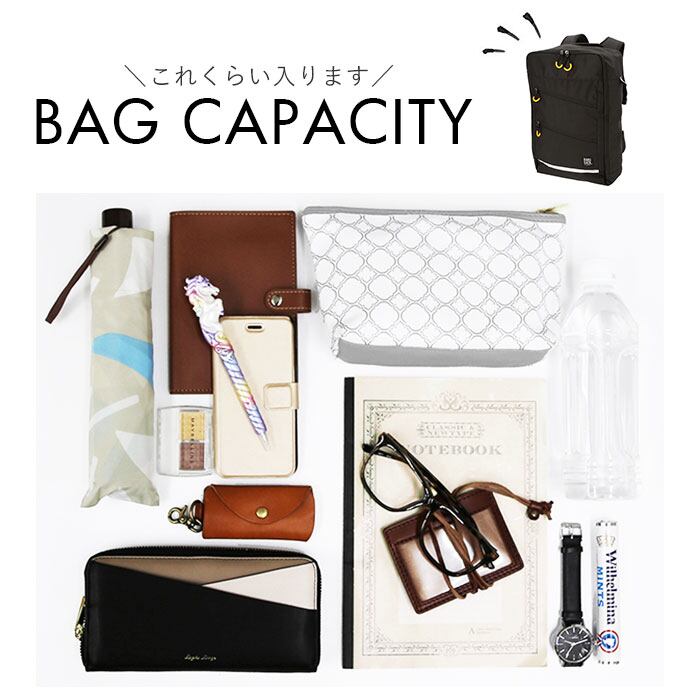 ・「全面ファスナー」仕様。開口部が大きく開きモノの出し入れが容易に。ブックストラップ使用時にも楽に整理ができる。