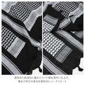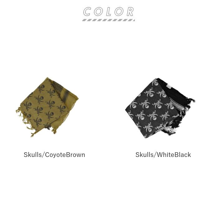 ・デザート・スカーフの名の通り、砂漠地帯での直射日光や熱風・砂塵を防ぐために、米特殊部隊などによって支給されているスカーフを元にデザインされたミリタリーマニア垂涎の逸品。