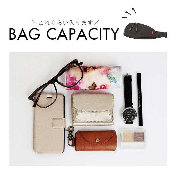 ・バックル式ベルトで装着もスムーズ。ベルト長さを調節すれば、ボディバッグとウエストバッグ、どちらのスタイルでもOK!