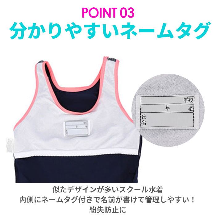 ・バスト・股部分は、成長期のお子さまも安心の二重構造。140cm・150cm・160cmサイズには取り外し可能な胸パッド付きで、バストを優しくカバー。
