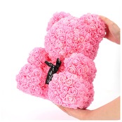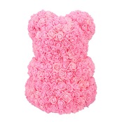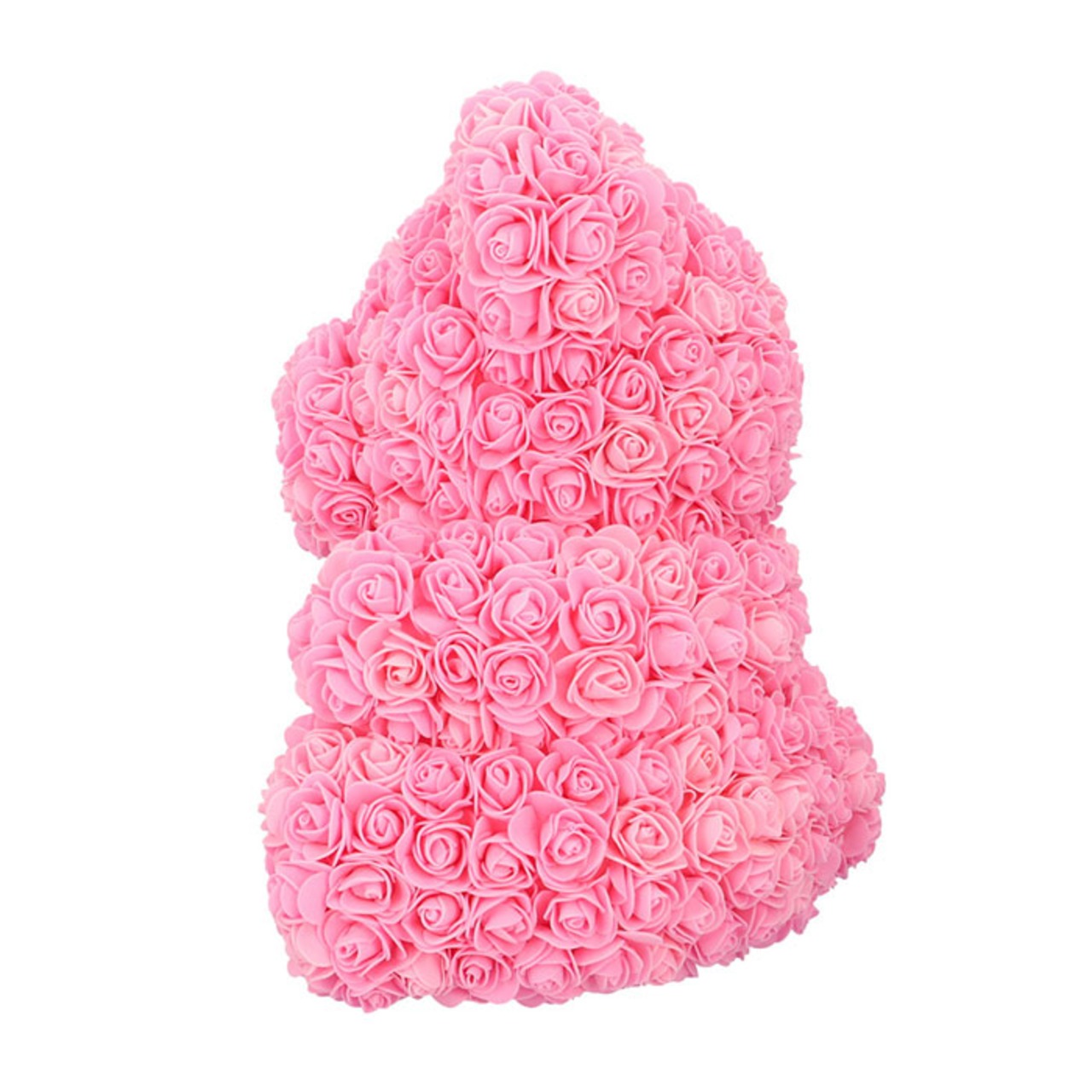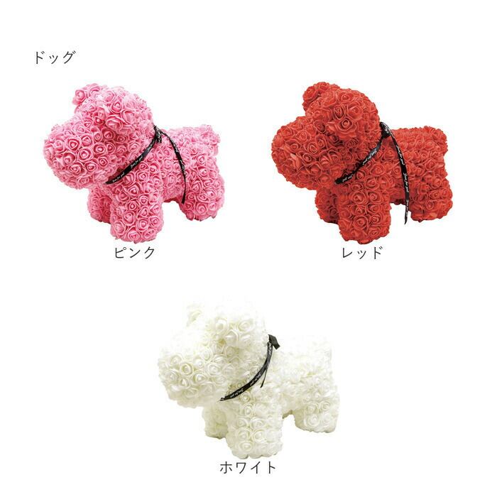 ・ちょこんとお座りしたクマさんと、今にも歩きだしそうなワンちゃんの置物をエレガントなバラの花で可愛くデコレーション。