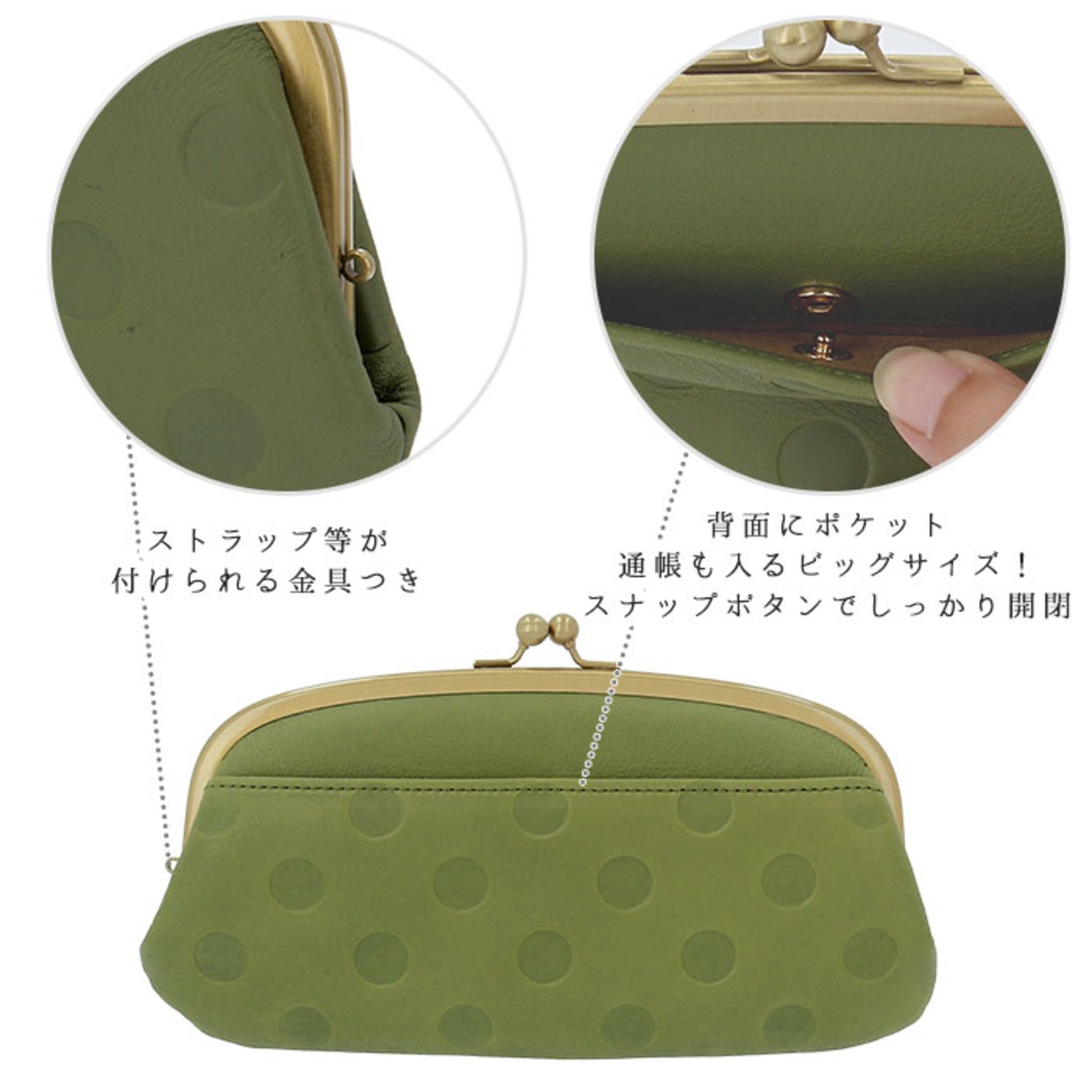 ・コロンとした可愛らしいフォルムにゴールドのがま口が上品さをプラス。