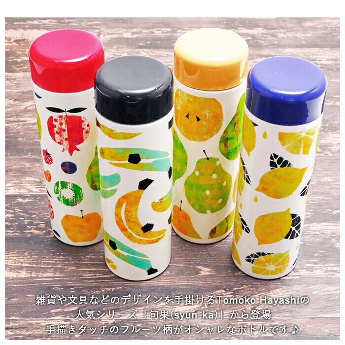 ・雑貨や文具などのデザインを手掛けるTomoko Hayashiの人気シリーズ「旬果(syun-ka)」から手描きタッチのフルーツ柄がオシャレなボトルが登場。
