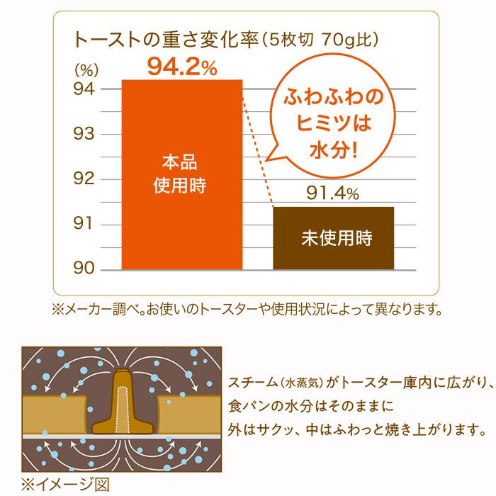 ・スチームトーストメーカーを水に20〜30秒つけてトースターに入れ、食パンと一緒に焼くだけ!