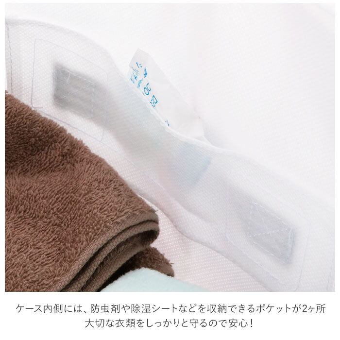 ・ケース内側には、防虫剤が収納できるポケットが2ヶ所。大切な衣類をしっかりと守るので安心。